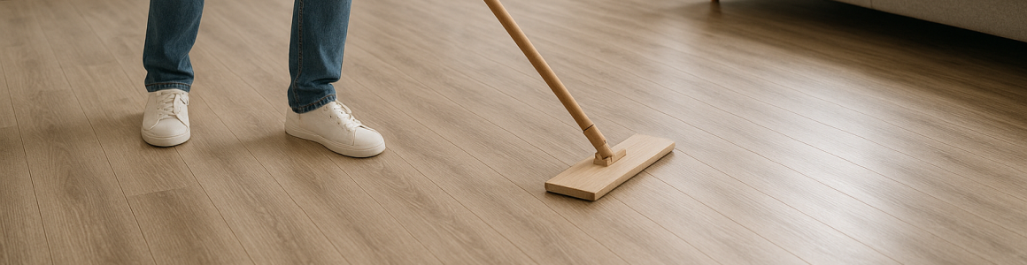 Пыль — главный враг гладкого пола. Она смешивается с водой, превращается в грязевую плёнку и оставляет туманные разводы. Люди часто думают, что проблема в средстве, но 70% разводов — это именно неубранная сухая грязь.