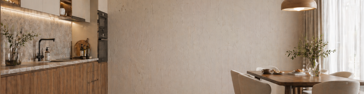 Если кухня активно используется, лучше смотреть моющиеся виниловые обои или виниловые обои на флизелиновой основе. Для обеденной зоны и свободных стен можно рассматривать флизелиновые варианты с подходящей маркировкой ухода.