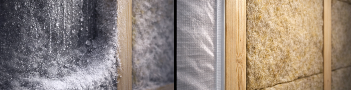 - Слишком плотный материал – каменная вата высокой плотности (≥ 50 кг/м³) в 100 мм не даёт нужного R‑значения, а лишь добавляет вес.