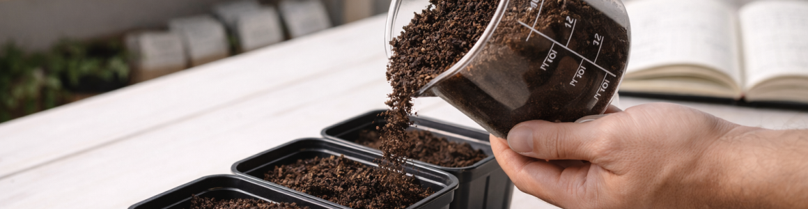 Для точного расчёта количества грунта достаточно знать общий объём ёмкостей, применить коэффициент заполнения и добавить 5‑10 % запаса. По таблице расхода: стаканчик 0,2 л → 0,15 л грунта, кассет 0,5 л → 0,32 л, ящик 1 л → 0,62 л. Делим полученный литраж на 10 л (ёмкость мешка) и округляем вверх.