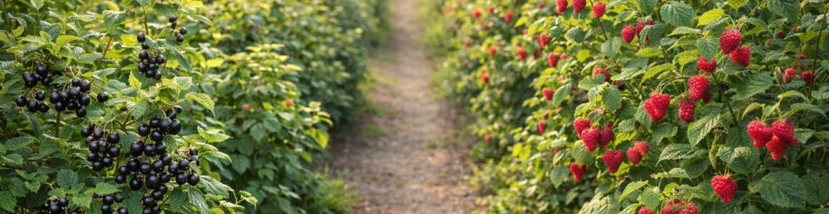 - Красная смородина (урожайность 3‑4 кг/куст, устойчива к –20 °C) и черная смородина (урожайность 4‑5 кг/куст, нуждается в полном солнечном свете).