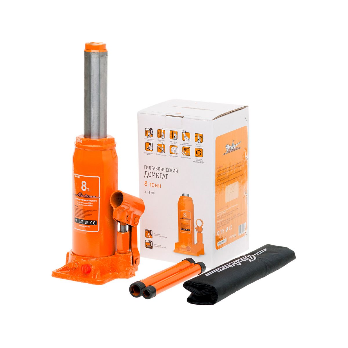 Бутылочный домкрат AIRLINE AJ-B-08 обладает компактными размерами и простейшей схемой функционирования. Занимает мало места и не требует особых знаний в использовании. 2 Единственное требование — хранение и транспортировка в вертикальном положении. Домкрат незаменим при необходимости поднять автомобиль массой до 8 т.