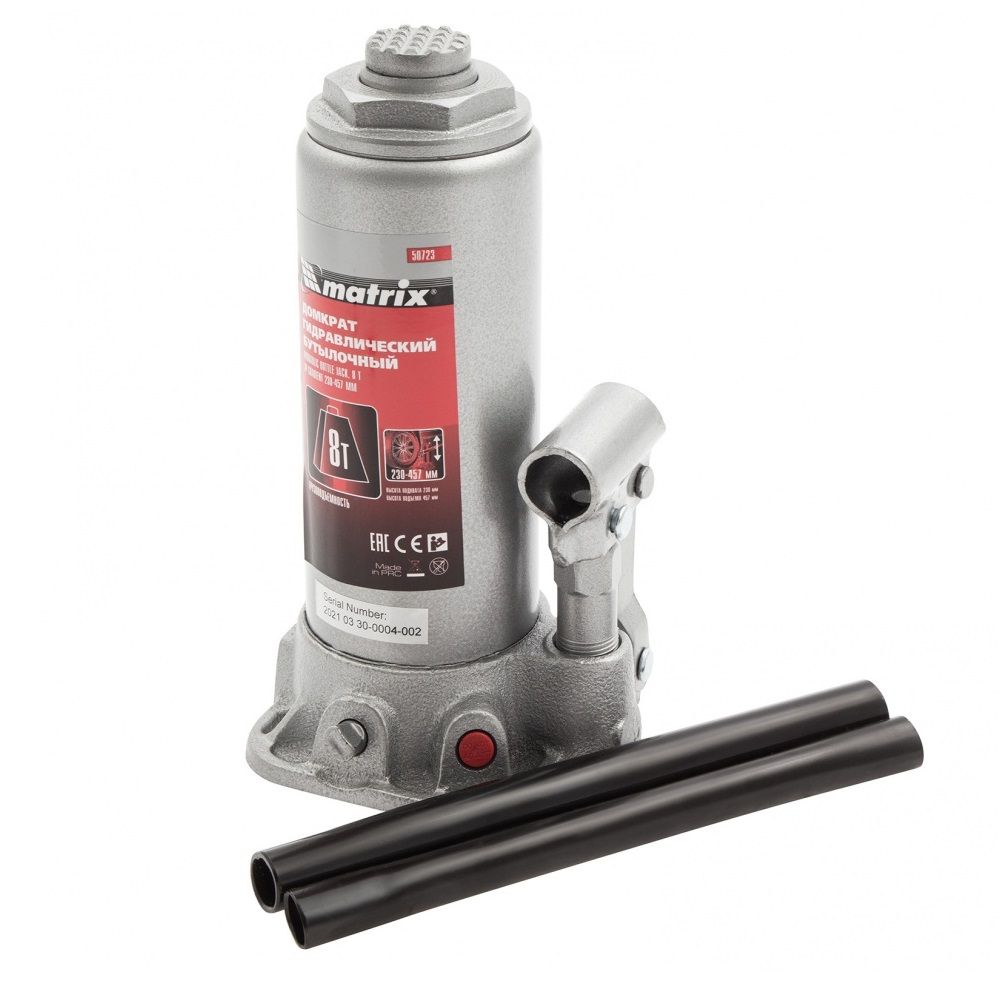 Домкрат гидравлический бутылочный 8т h подъема 230–457 мм// MATRIX MASTER