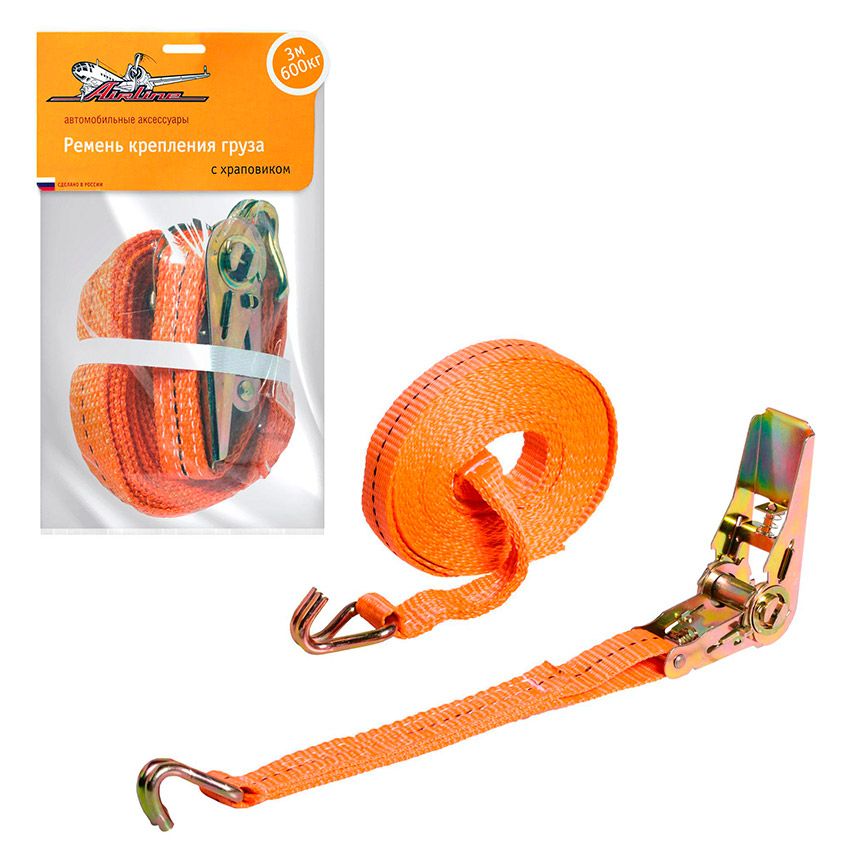 Ремни крепления груза AIRLINE отличаются высокой прочностью и долговечностью благодаря использованию специальных материалов и инновационных технологий. Они оснащены стальным храповым механизмом, который обеспечивает надежную фиксацию груза и предотвращает его смещение при движении и маневрировании, а также стальными крюками. Ремни изготовлены из морозо- и влагостойкой полиэстеровой ленты, которая не истирается со временем и не выгорает на солнце. Особую эффективность и безопасность обеспечивает применение уникальной технологии THERMO-FLEX, которую разработала компания AIRLINE. Эта технология включает два обязательных этапа - термофиксацию самого материала и его дальнейшее растягивание, это помогает увеличить прочность и срок службы по сравнению с бюджетными аналогами. Ремни крепления груза, изготовленные с использованием технологии THERMO-FLEX, обладают минимальным процентом удлинения при максимальной нагрузке (менее 7%), что обеспечивает безопасность и надежность при перевозке грузов. Стяжные ремни AIRLINE идеально подходят для крепления грузов на грузовых транспортных средствах, прицепах и в багажнике автомобилей, а также для фиксации различных предметов, обеспечивая безопасность и сохранность груза в любых условиях. Ремень с храповиком имеет длину 3 м. Прочность и выдерживаемая нагрузка до 0,6 т. Важно отметить, что ремень не предназначен для подъема грузов.