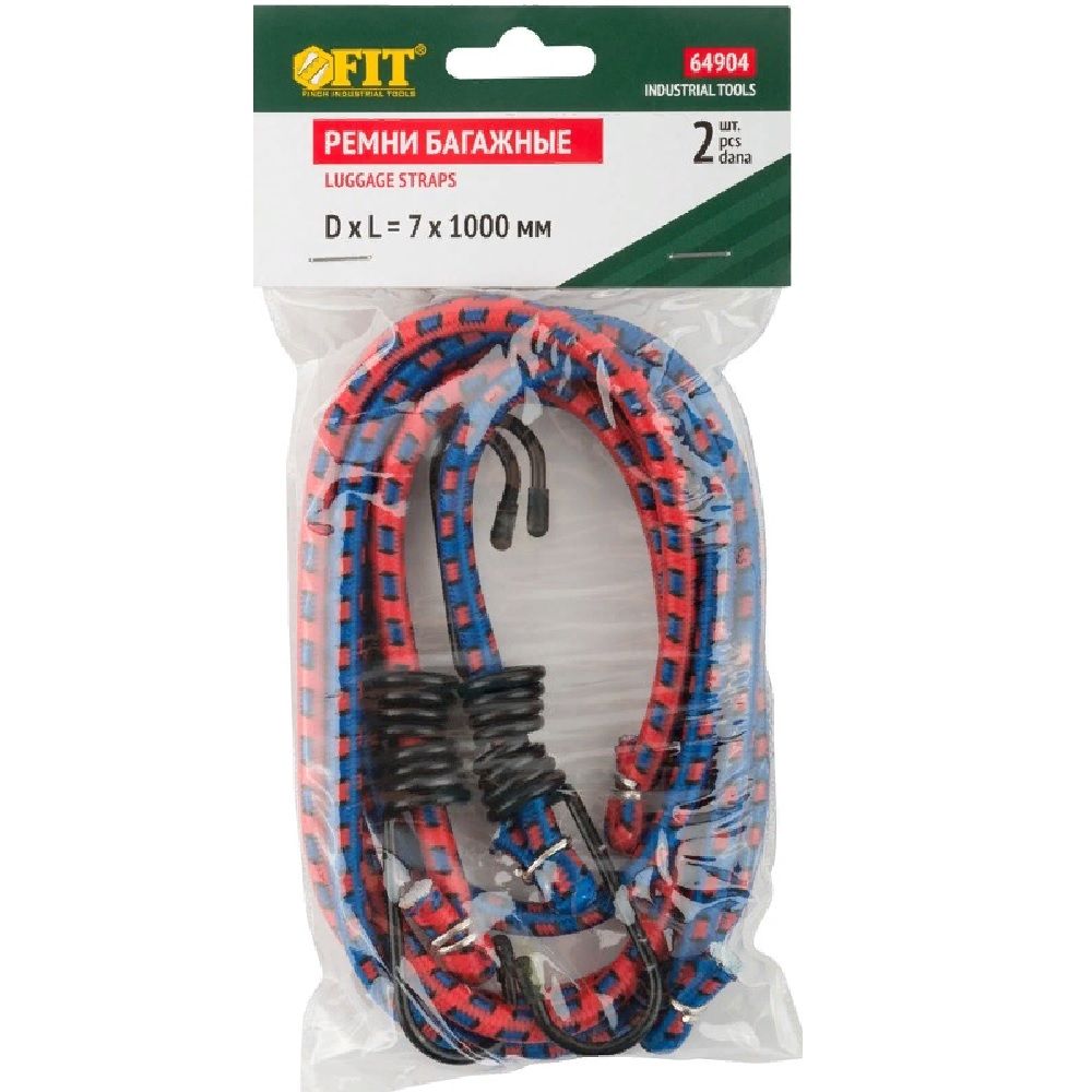 Ремни багажные латексные, 2 шт., 7х1000 мм, FIT (артикул 64904) используются при автомобильных и контейнерных перевозках для крепления и фиксации различных грузов.