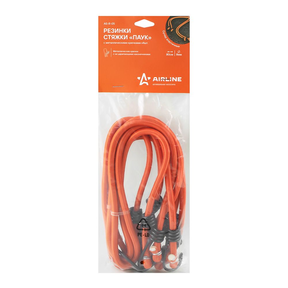 Резинки-стяжки набор Паук 4шт.-80 см D-8 мм металлические крючки AS-R-05