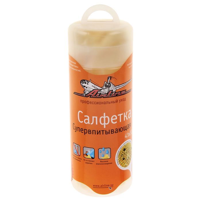 Салфетка данной модели является специальной разработкой AIRLINE, которая позволит сделать уборку автомобиля еще проще и гораздо быстрее. Особый материал, из которого изготовлена салфетка, является супер абсорбентом и отличается высокими показателями влаговпитывания. Такие материалы как микрофибра или замша уступают супервпитывающей салфетке в качественных показателях в несколько раз. Салфетка поможет устранить загрязнения и жидкость и поддержать автомобиль в чистоте.