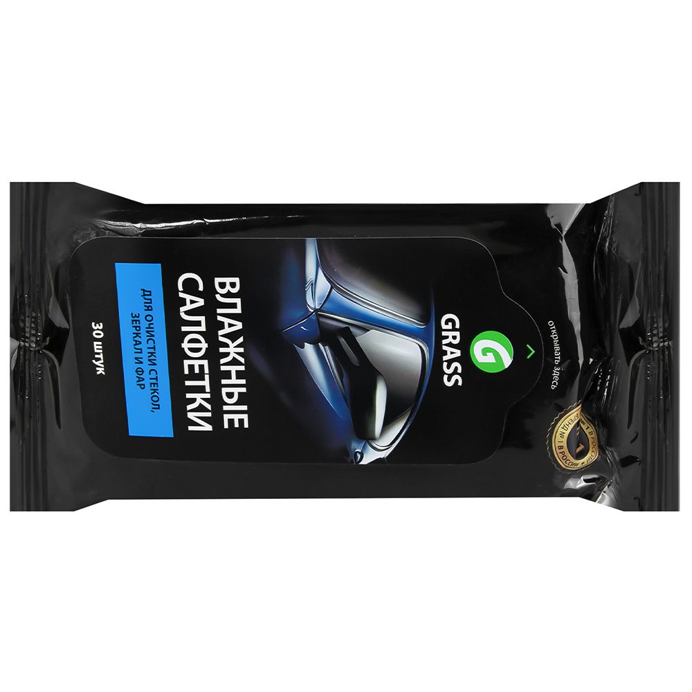 Салфетки влажные для очистки стекол, зеркал, фар , GRASS