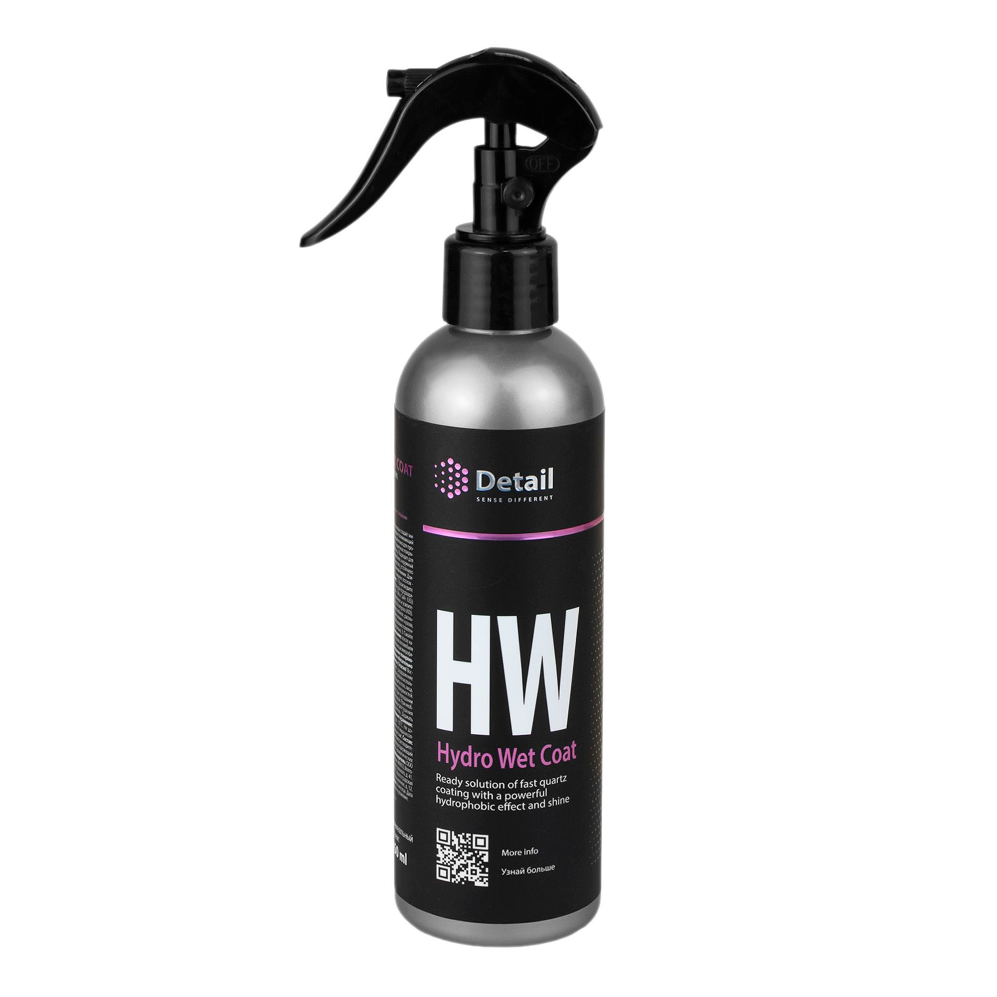 Готовый раствор кварцевого покрытия с мощным гидрофобным эффектом и блеском. Hydro Wet Coat (HW) за считанные секунды создаёт микрослой обеспечивающий грязе- и водоотталкивающий эффект. Инновационное средство разработано для профилактики всех профессиональных защитных покрытий в условиях автомоечного комплекса. Подходит для следующих поверхностей: кузов автомобиля, наружный пластик, стёкла, шины и диски. Средство устойчиво к щелочам и другой агрессивной дорожной химии. Длительный срок службы в отличие от жидких восков - до 3-х месяцев.