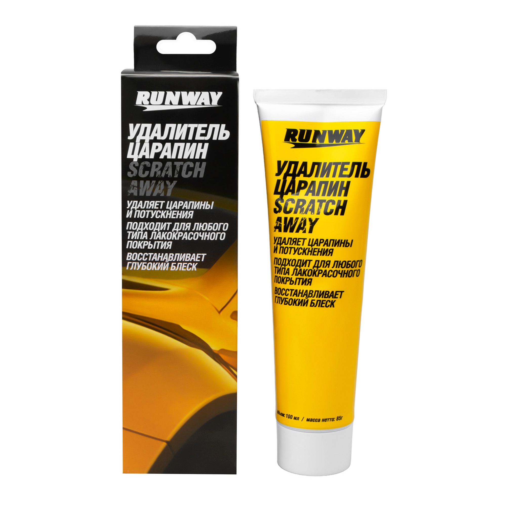 Удалитель царапин туба RUNWAY 100мл RW0502. Профессиональный состав на основе мягких абразивов и специальных полировальных масел. Средство в своем составе не содержит воска и силикона. Удалитель царапин идеально подходит для любого типа ЛКП автомобиля. Применяется для устранения дефектов лакокрасочного покрытия в виде небольших царапин, потертостей и вихреобразных дефектов после щеточной мойки автомобиля. Используется для очистки и подготовки поверхности к нанесению защитных полиролей. Быстро освежает цвет машины и придать ей блеск. Усиливает бриллиантовый блеск поверхности, гарантирует защитные свойства от паутинных царапин. С его применением лакокрасочная поверхность приобретает долговременный защитный блестящий слой. Благодаря кремообразной структуре средство легко наносится на горизонтальные и вертикальные поверхности, что делает его нанесение и использования максимально эффективным и комфортным.