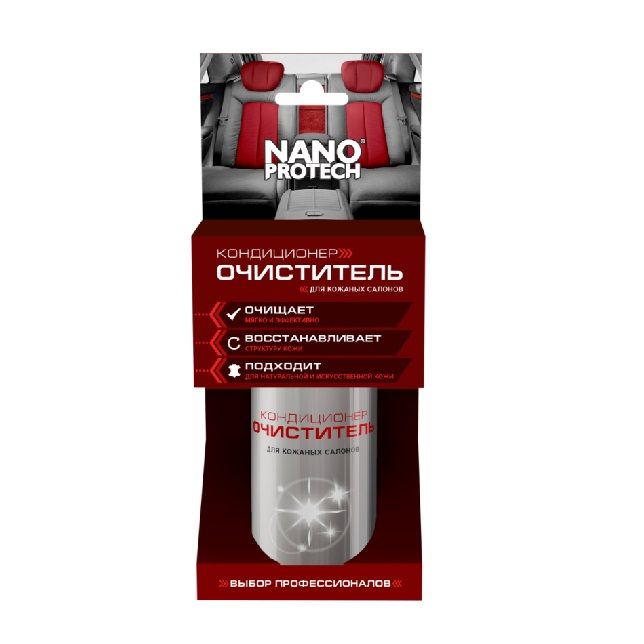 Очиститель-кондиционер для кожаных салонов NANOPROTECH 210 мл — высокоэффективное средство для очистки всех типов деталей интерьера из натуральной и искусственной кожи. Состав проникает в поры кожи, впитывается без остатка, восстанавливает структуру, придаёт мягкость, шелковистость, блеск, водоотталкивающие свойства и защищает от загрязнений и ультрафиолетовых лучей.