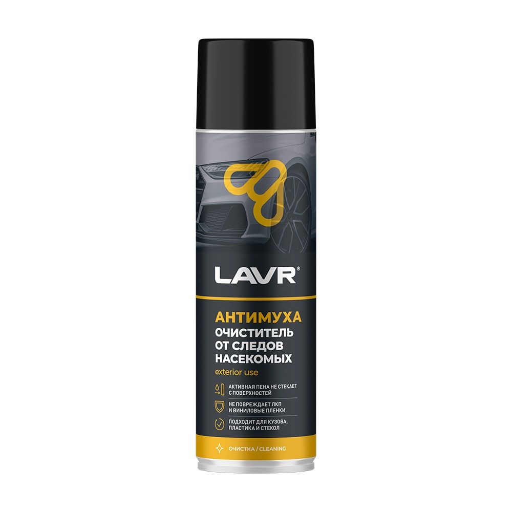 Очиститель следов насекомых Антимуха LAVR – специальное пенное средство в аэрозольном формате для удаления следов от насекомых с поверхности автомобиля. Эффективно справляется с трудновыводимыми органическими следами на кузове, бамперах, пластиковых и хромированных деталях, стеклах, фарах и зеркалах. Активная формула быстро проникает вглубь загрязнений и размягчает их. Не стекает с вертикальных поверхностей, а также продлевает очищающее воздействие.