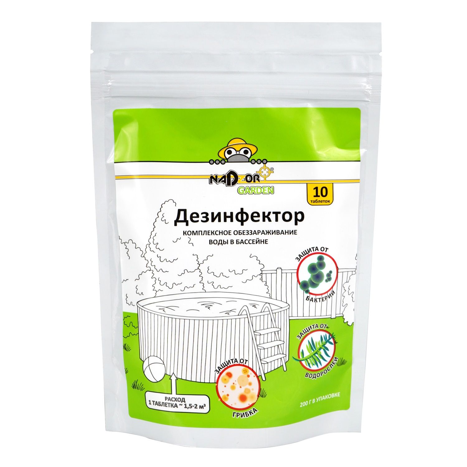 Средство для обеззараживания воды в бассейнах Дезинфектор Nadzor Garden 10 таб 200 г