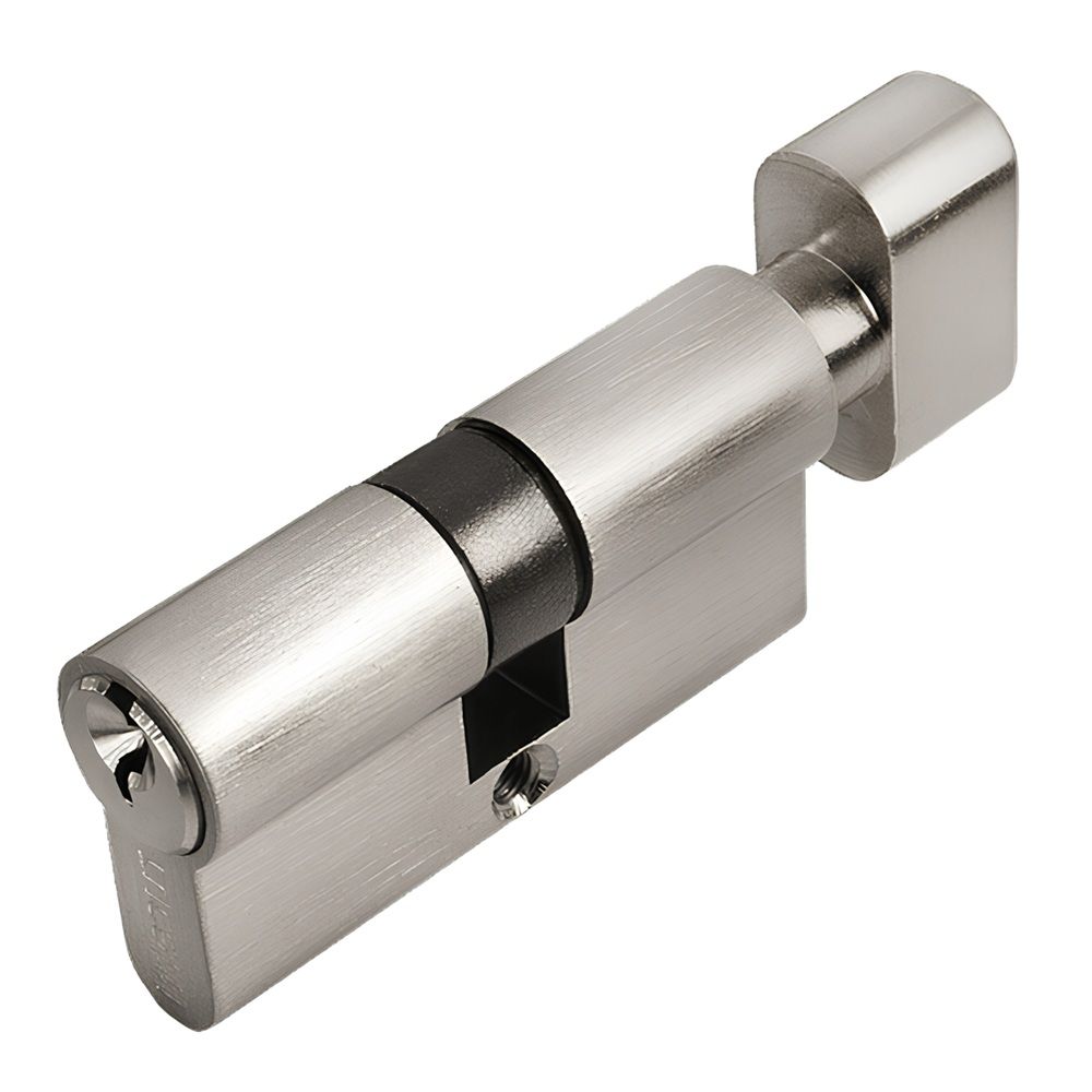 Ключевой цилиндр с заверткой для двери толщиной 60мм вставляется в замок или защелку для закрытия ключом с одной стороны помещения и поворота кноба с другой.