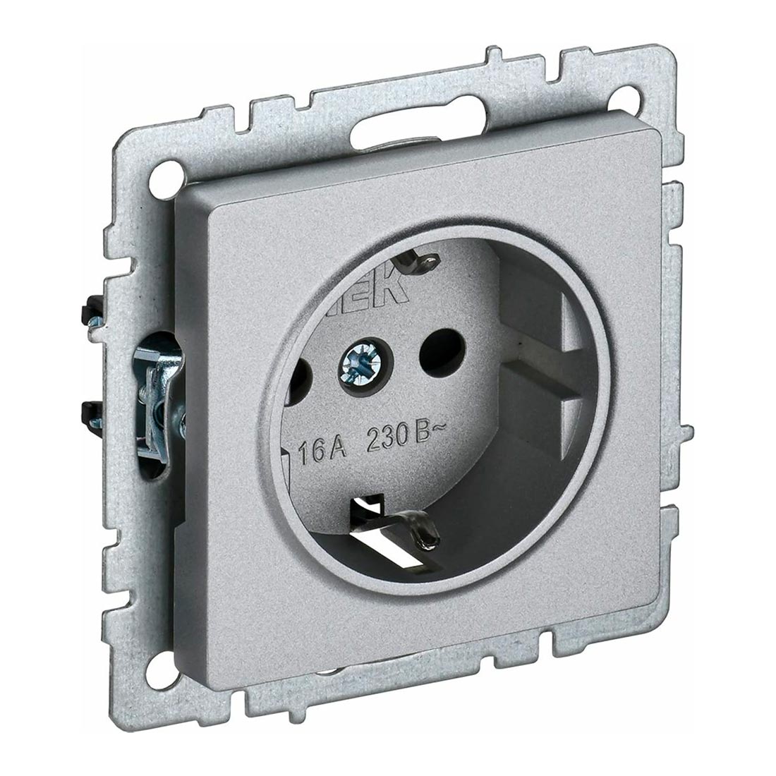 Розетка 1-местная Brite РС14-1-0-БрА 16А с заземлением с защитными шторками IEK BR-R14-16-K47 алюминий