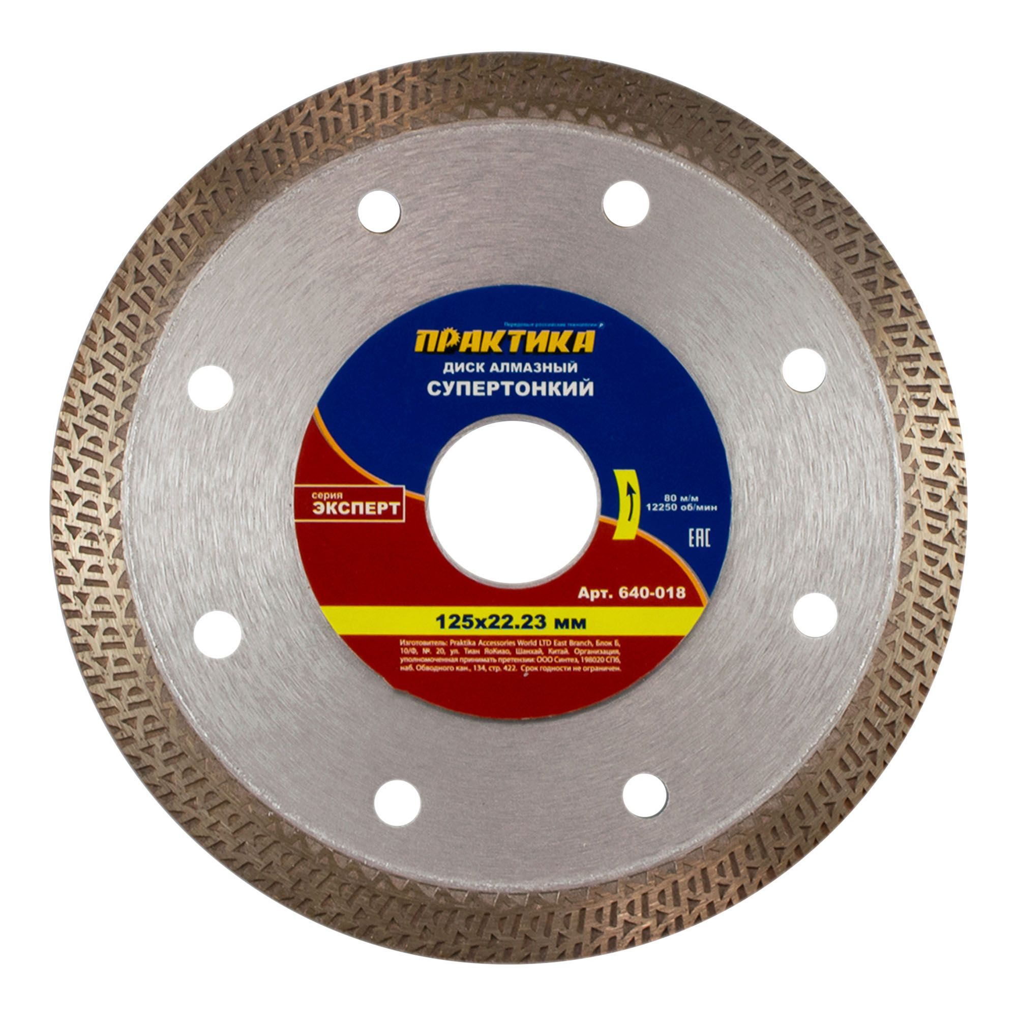 Сверхтонкий турбодиск Практика 125 мм — профессиональный инструмент для сухой и влажной резки керамогранита. Толщина 1,4 мм, турбированная кромка и высокая скорость обеспечивают чистоту и точность. Посадка 22 мм. Минимум сколов, максимум производительности — идеален для твёрдых материалов!