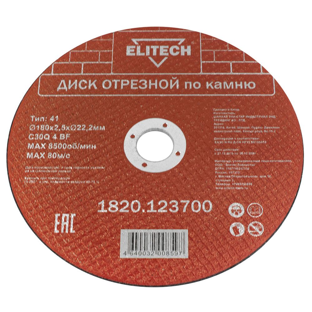 Диск отрезной по камню 180х2,5х22,2 мм Elitech