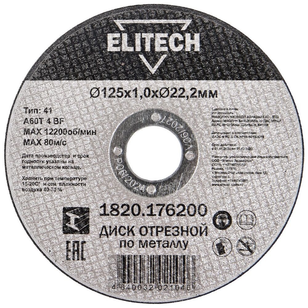 Диск отрезной по металлу 125х1х22,2 мм Elitech
