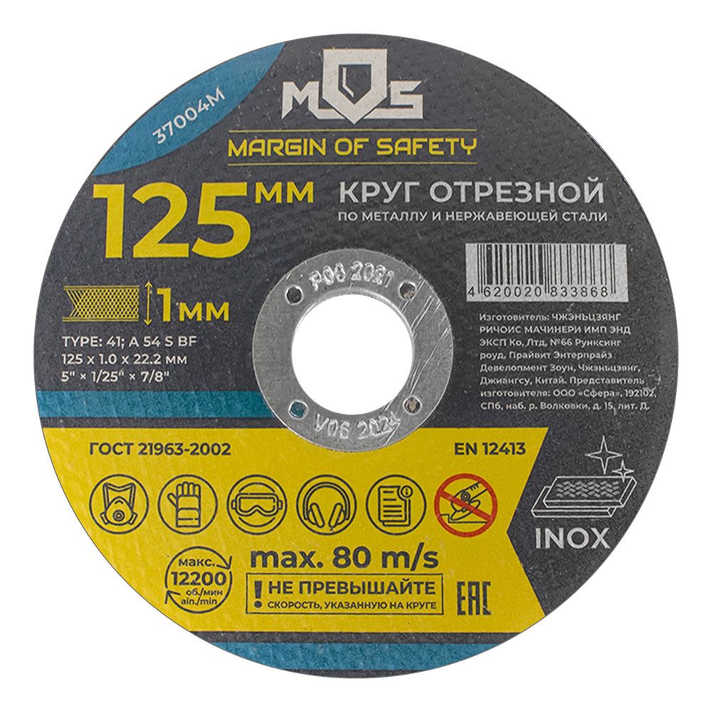 Диск отрезной по металлу 125х1х22,2 мм MOS