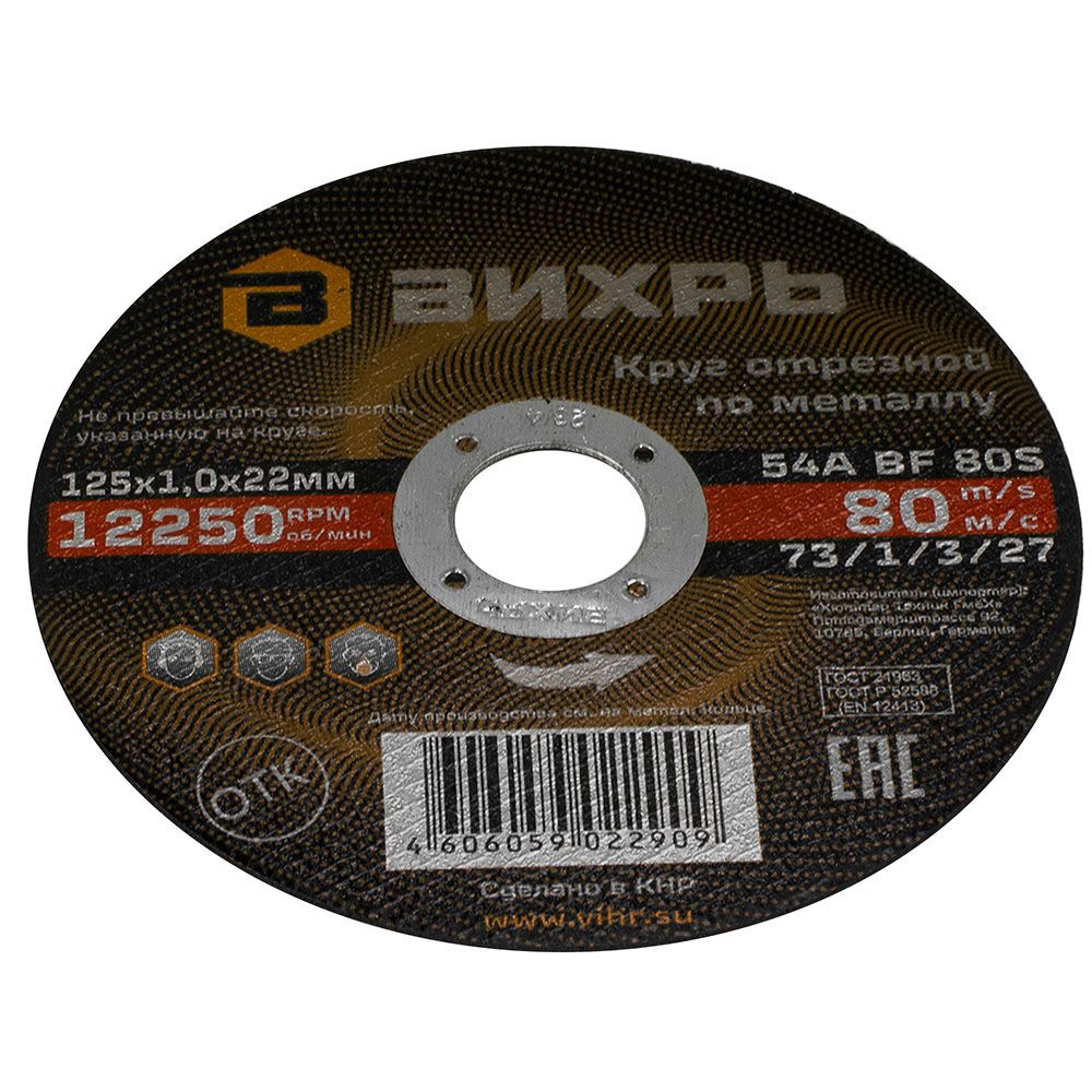 Диск отрезной по металлу 125х1х22 мм Вихрь