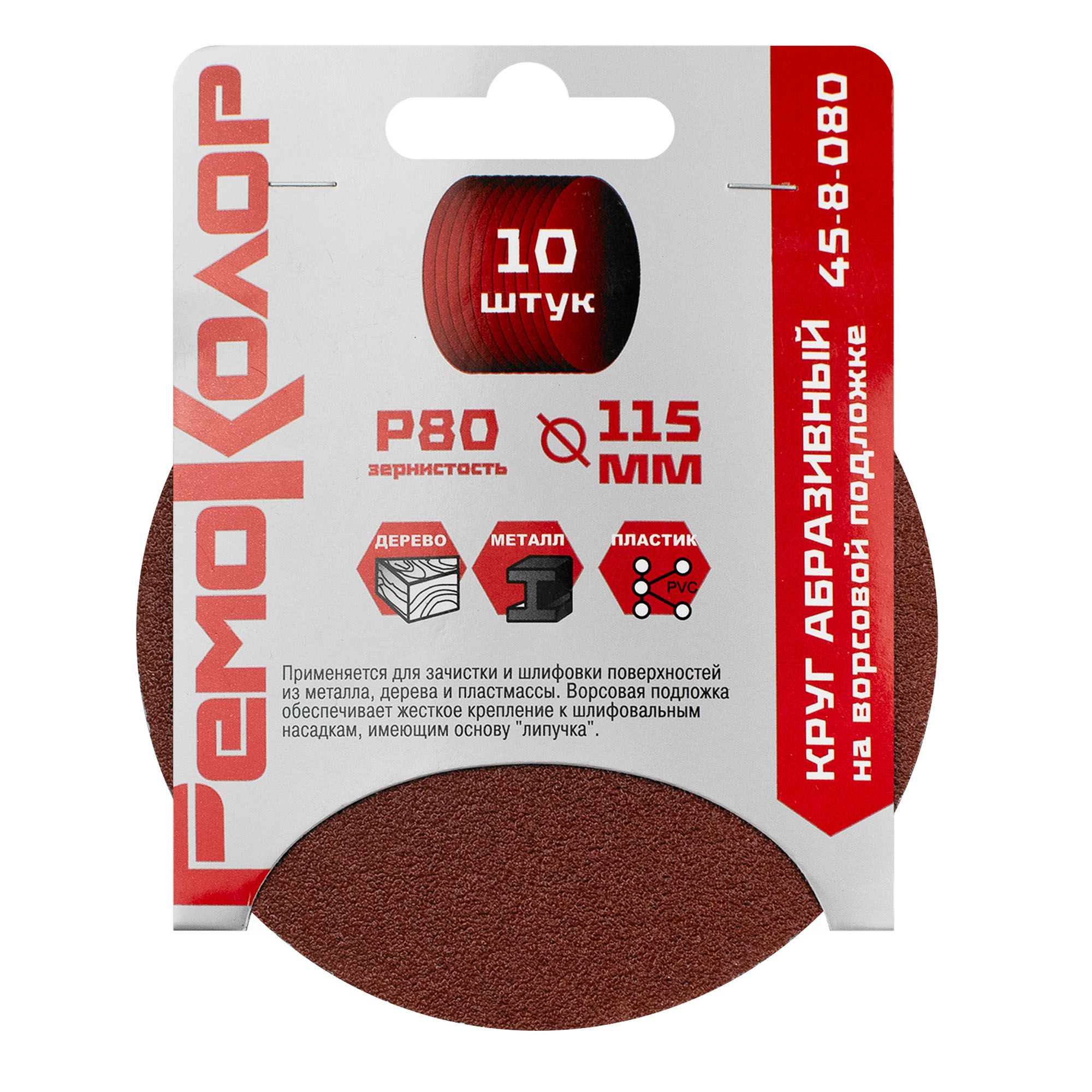 Круг шлифовальный 115 мм Р80 под липучку 10 шт РемоКолор 45-8-080