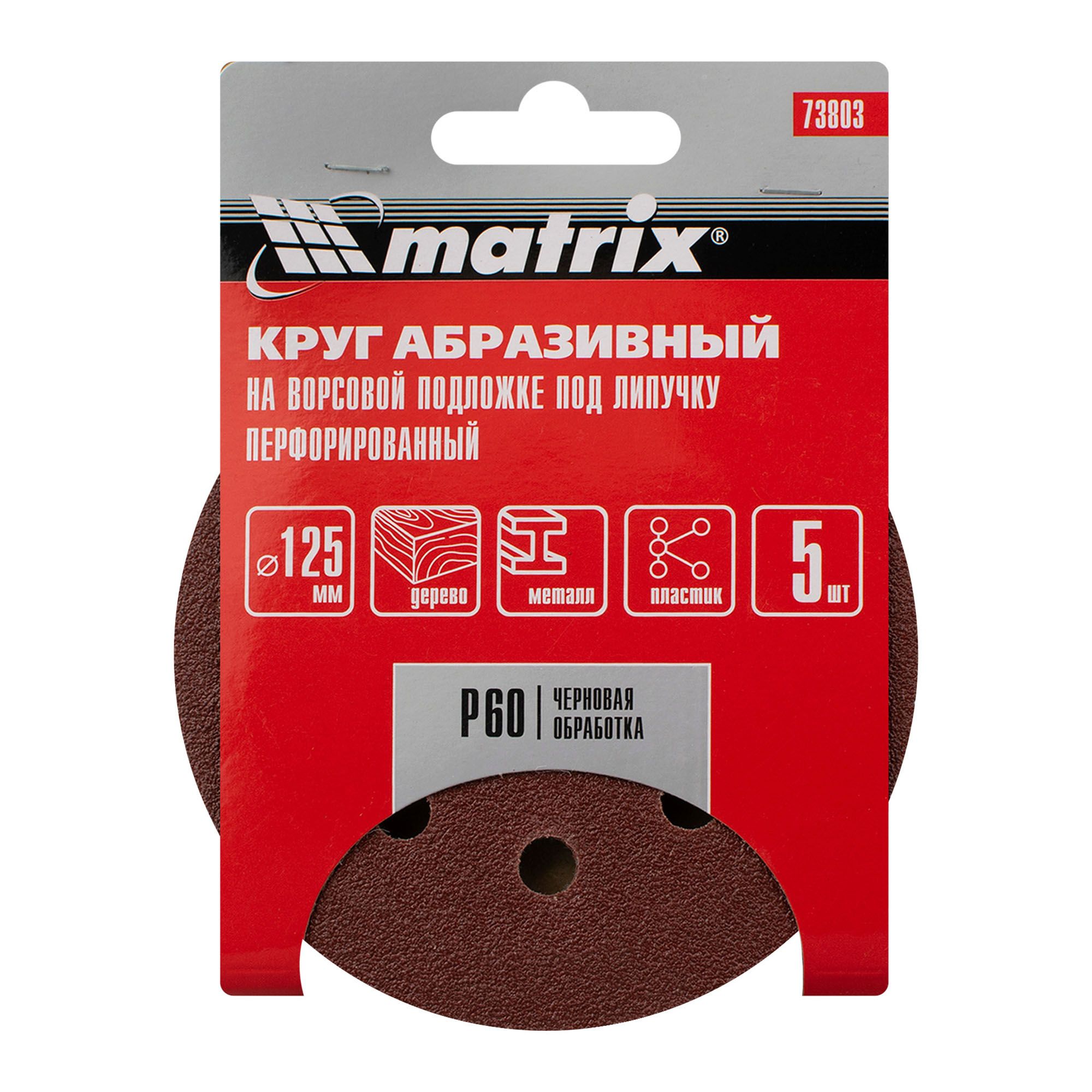 Круг шлифовальный 125 мм Р60 перфорированный под липучку 5 шт Matrix