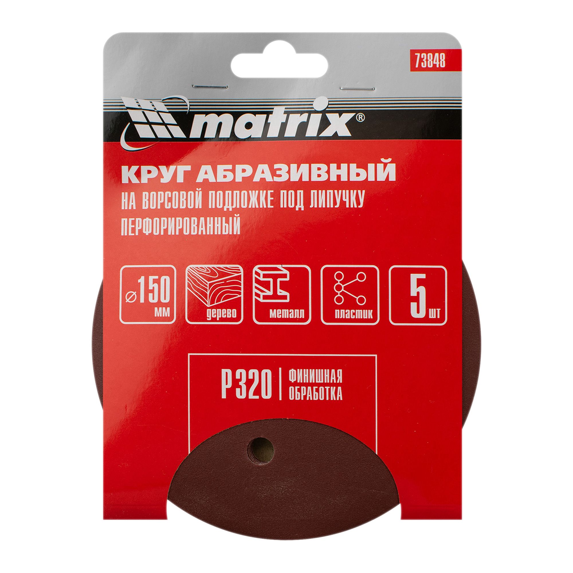 Круг шлифовальный 150 мм Р320 перфорированный под липучку 5 шт Matrix