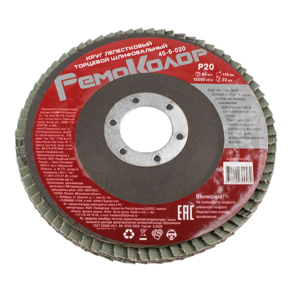 Круг шлифовальный лепестковый торцевой 115х22 мм Р20 РемоКолор 45-6-020