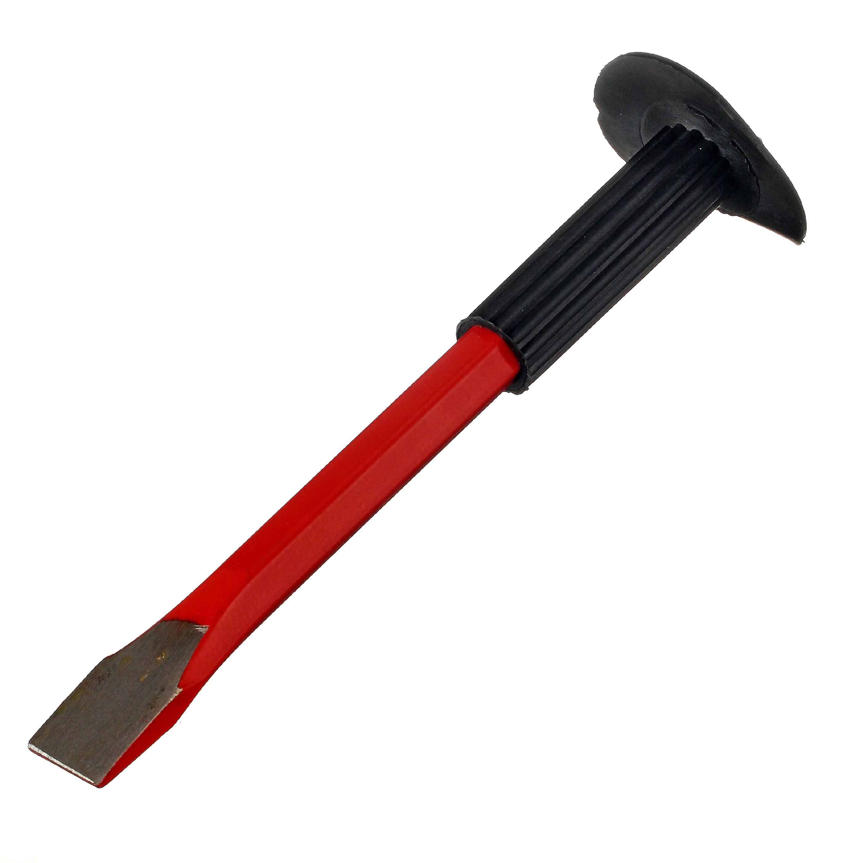 Материал: углеродистая инструментальная сталь. Обрезиненная рукоятка с фартуком (с протектором) способствует надежному хвату и защищает руки от удара молотком.