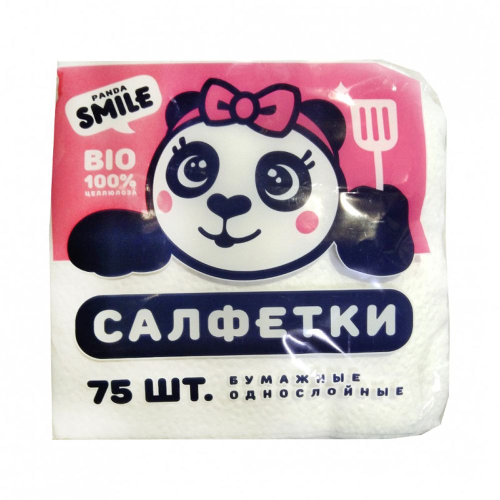Салфетки бумажные Panda Smile 24х24 см 1 слойные 75 шт белые