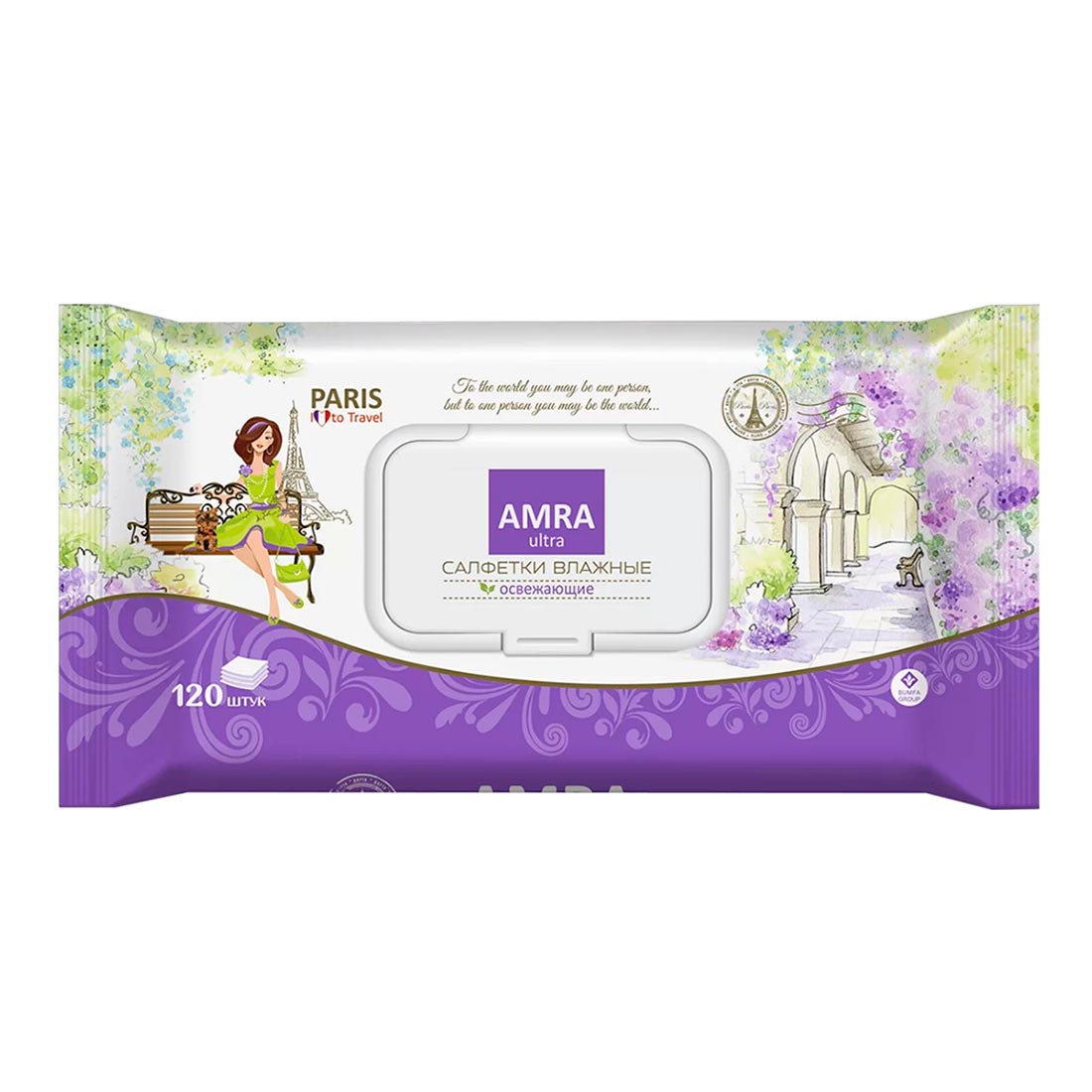 Салфетки влажные AMRA travel PARIS 120шт
