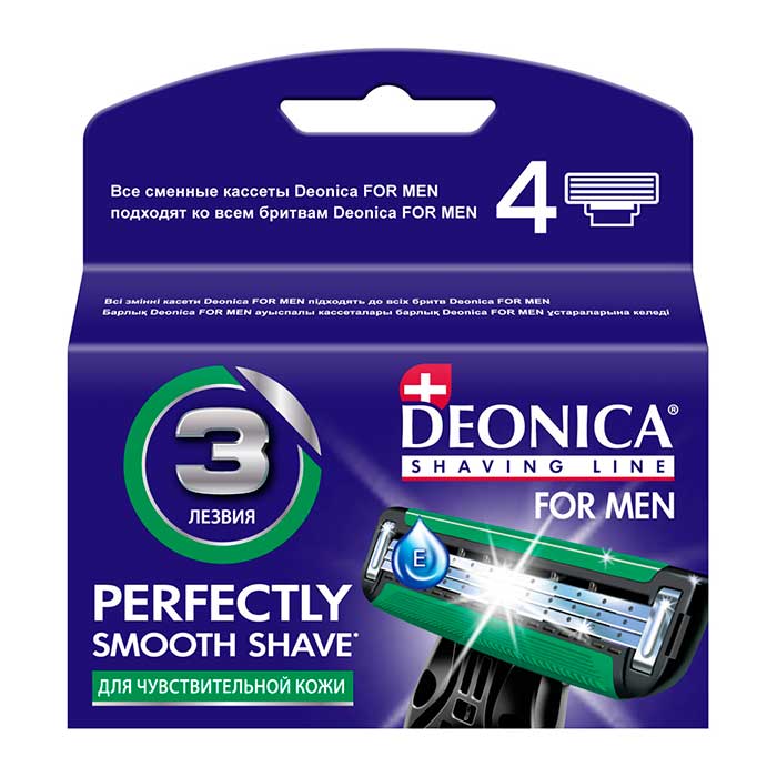 Сменные кассеты Deonica For Men с тремя лезвиями для чистого и комфортного бритья. Обеспечивают длительное использование.