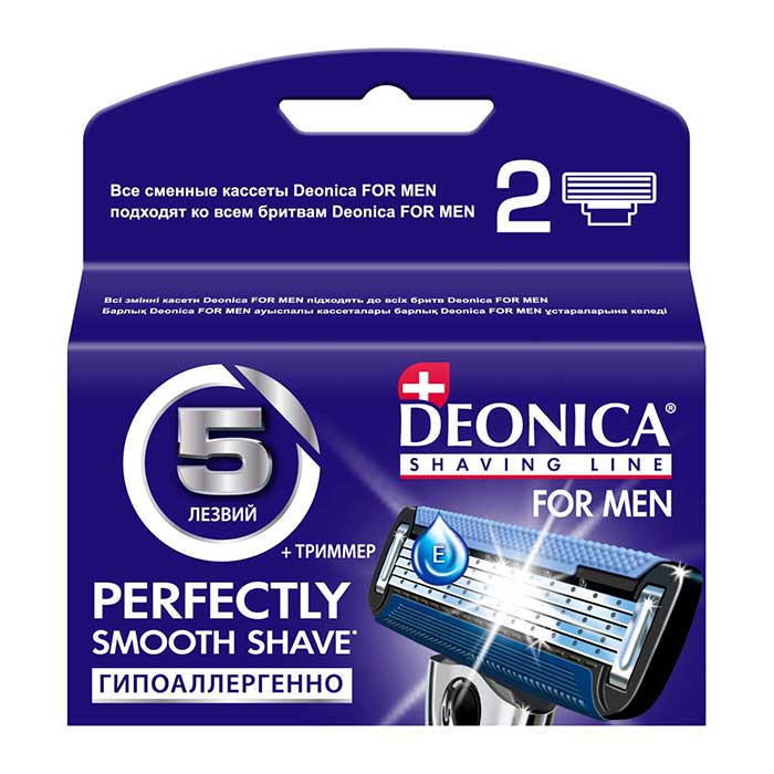 Кассеты для бритья Deonica For Men с пятью лезвиями гарантируют ультрагладкое бритье без раздражений.