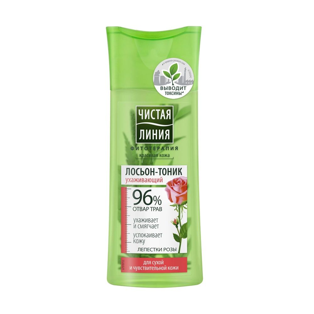 Лосьон-тоник Чистая Линия Лепестки роз - это прекрасное средство для ухода за сухой и чувствительной кожей лица. Средство предназначено для очищения кожи лица от различных загрязнений, средство эффективно устраняет налет, липкость, а также способствует тонизированию кожи. Не стоит бояться, что кожа окажется сухой после применения средства, лосьон-тоник не сушит кожу, при этом деликатно успокаивает кожу, смягчает, бережно очищая, а результатом становится здоровое и красивое лицо. Очень эффективно использовать средство как один из этапов подготовки к нанесению других уходовых средств. В состав лосьона для лица Чистая линия входит отвар трав с лепестками роз, который обладает рядом полезных свойств, роза отлично справляется с потерей влаги, предотвращая ее, выравнивает цвет лица, положительно влияет на упругость и эластичность кожи.