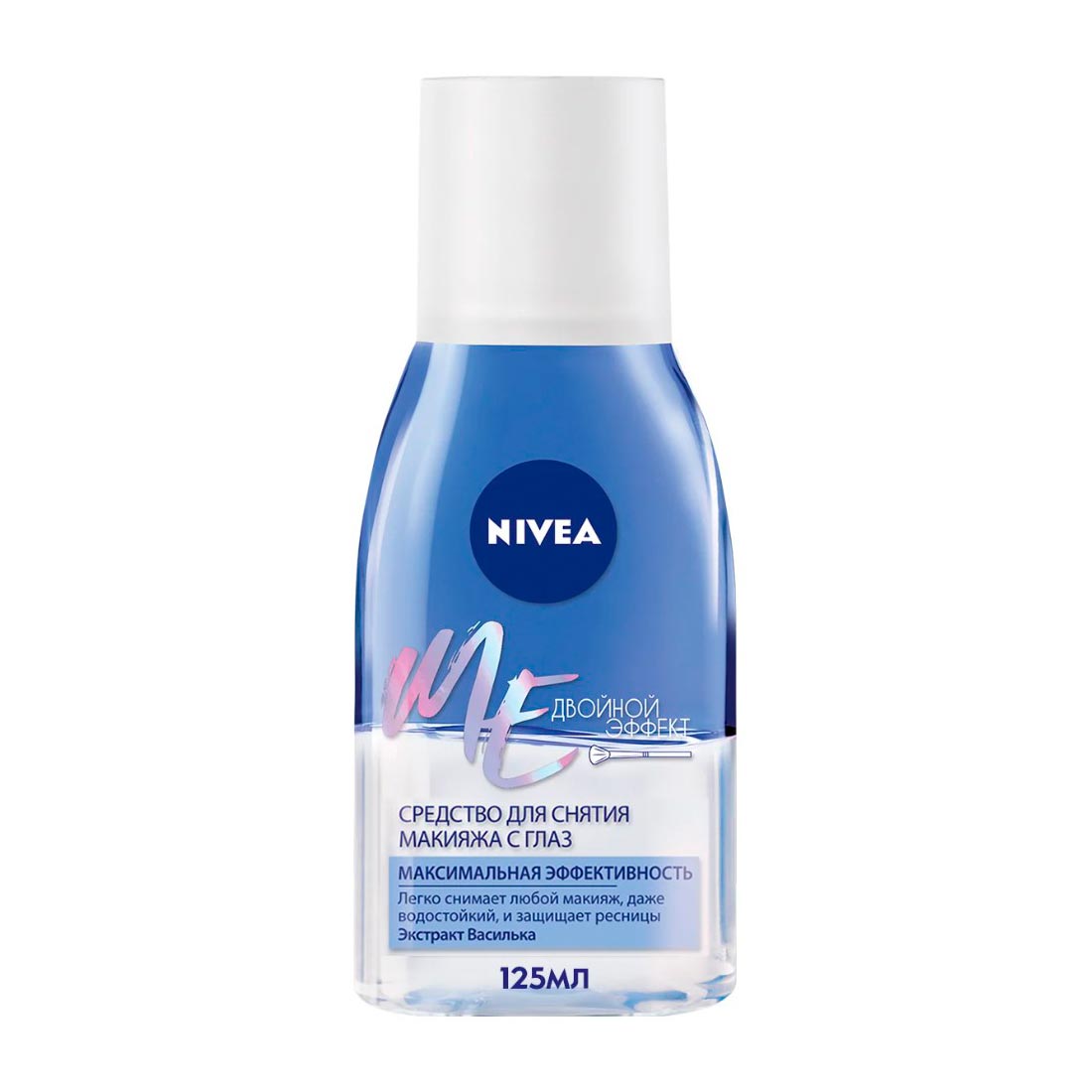 Средство для снятия макияжа с глаз Nivea Двойной эффект эффективно удаляет даже водостойкий макияж, и, благодаря двухфазной формуле с экстрактом василька, защищает от повреждения ресницы. Оно идеально и бережно очищает кожу вокруг глаз и не оставляет ощущения жирности и липкости. Эффективно удаляет даже экстремальную водостойкую тушь для ресниц и стойкий макияж. Средство для удаления макияжа с глаз Двойной эффект от Nivea подходит даже для чувствительной кожи и не щиплет глаза при использовании. Подходит при использовании контактных линз.