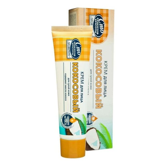 Крем для лица Кокосовый для сухой кожи настоящее спасение для обладательниц сухой кожи. Обладает сладким ароматом кокоса. Жирноватая кремовая масса белого цвета легко впитывается. После использования на лице не остается масляной пленки. Рекомендуется использовать на очищенную кожу. Содержит натуральное кокосовое масло. После использования кожа сияет, становится нежной и бархатистой.