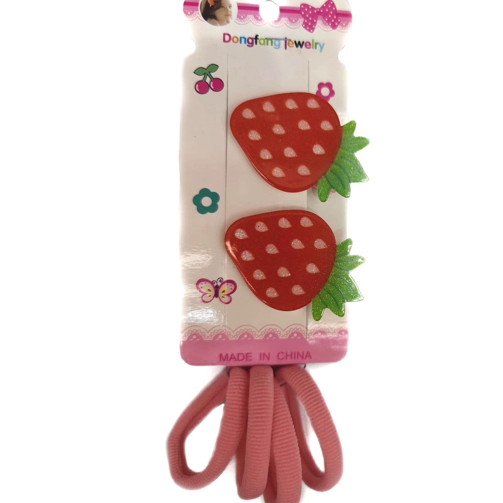 Аксессуары для волос детские Розовое облако Клубнички 2 зажима, 4 резинки