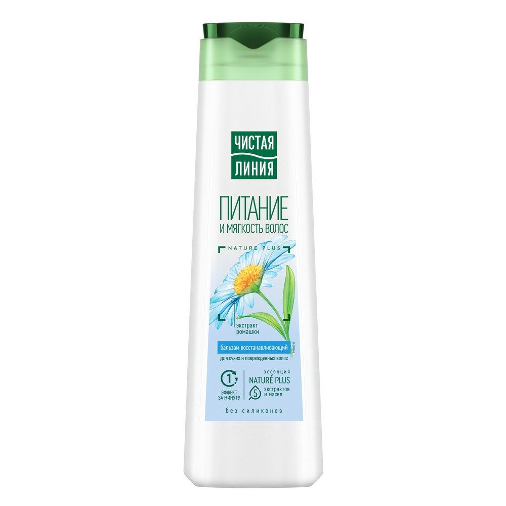 Бальзам для волос Чистая Линия Питание и мягкость для сухих и поврежденных волос с экстрактом ромашки 380 мл на 97% состоит из компонентов натурального происхождения. Содержит 5 экстрактов и масел масел (экстракты вербены, шалфея, шиповника, масло миндаля и льна). Активные натуральные компоненты предупреждают выпадение, питают и защищают волосы от повреждений.
