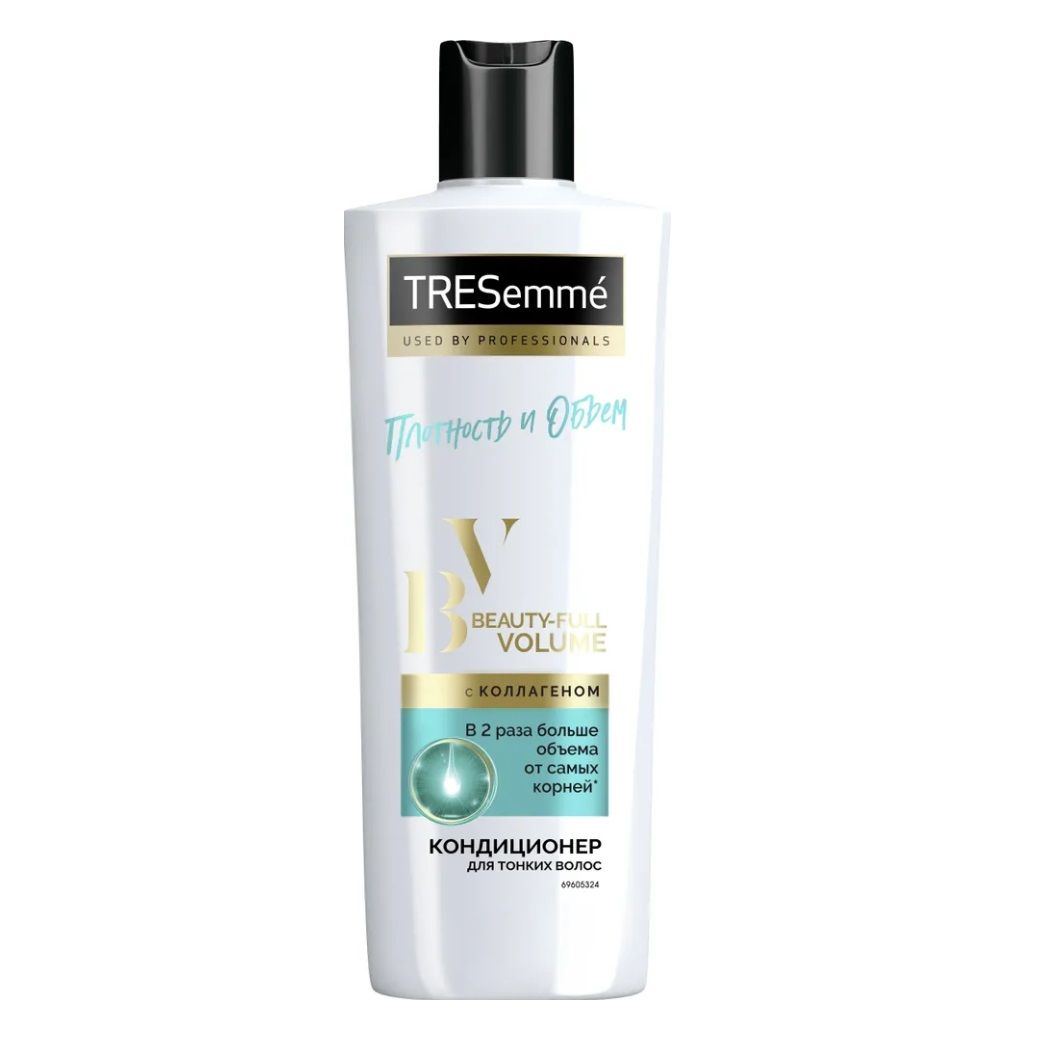 Кондиционер для волос Tresemme для создания объема 400 мл, если у тебя тонкие, лишенные объема волосы, используй серию средств для волос TRESemmé Beauty-full Volume с комплексом коллагена и пептида для придания объема от самых корней. Он придает волосам плотность, питает без эффекта утяжеления и облегчает расчесывание.