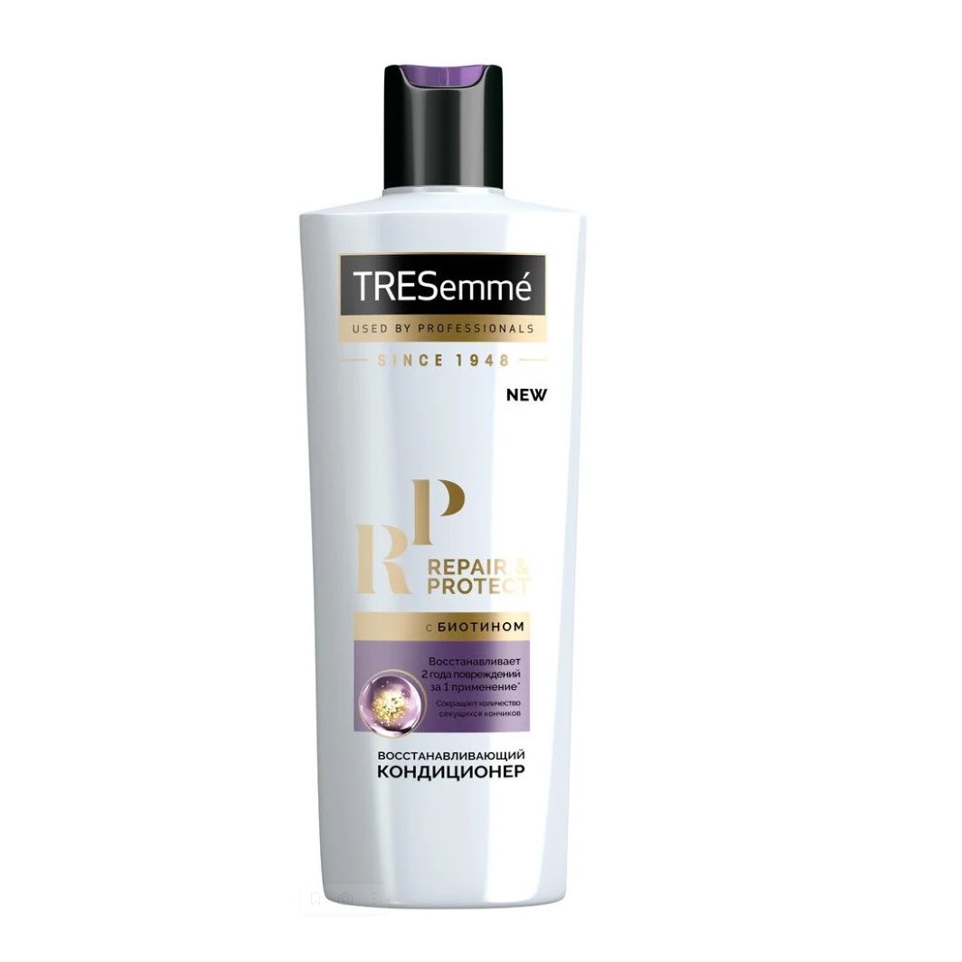 Кондиционер для волос Tresemme восстанавливающий 400 мл, с биотином и аминокислотами восстанавливает и укрепляет волосы изнутри, уменьшает ломкость и количество секущихся кончиков, облегчает расчесывание. Кондиционер подходит для всех видов поврежденных волос, а также для ежедневного применения. Биотин восстанавливает волосы, уменьшает ломкость и количество секущихся кончиков. Аминокислоты поддерживают структурную составляющую волос, обеспечивают защиту и укрепление.
