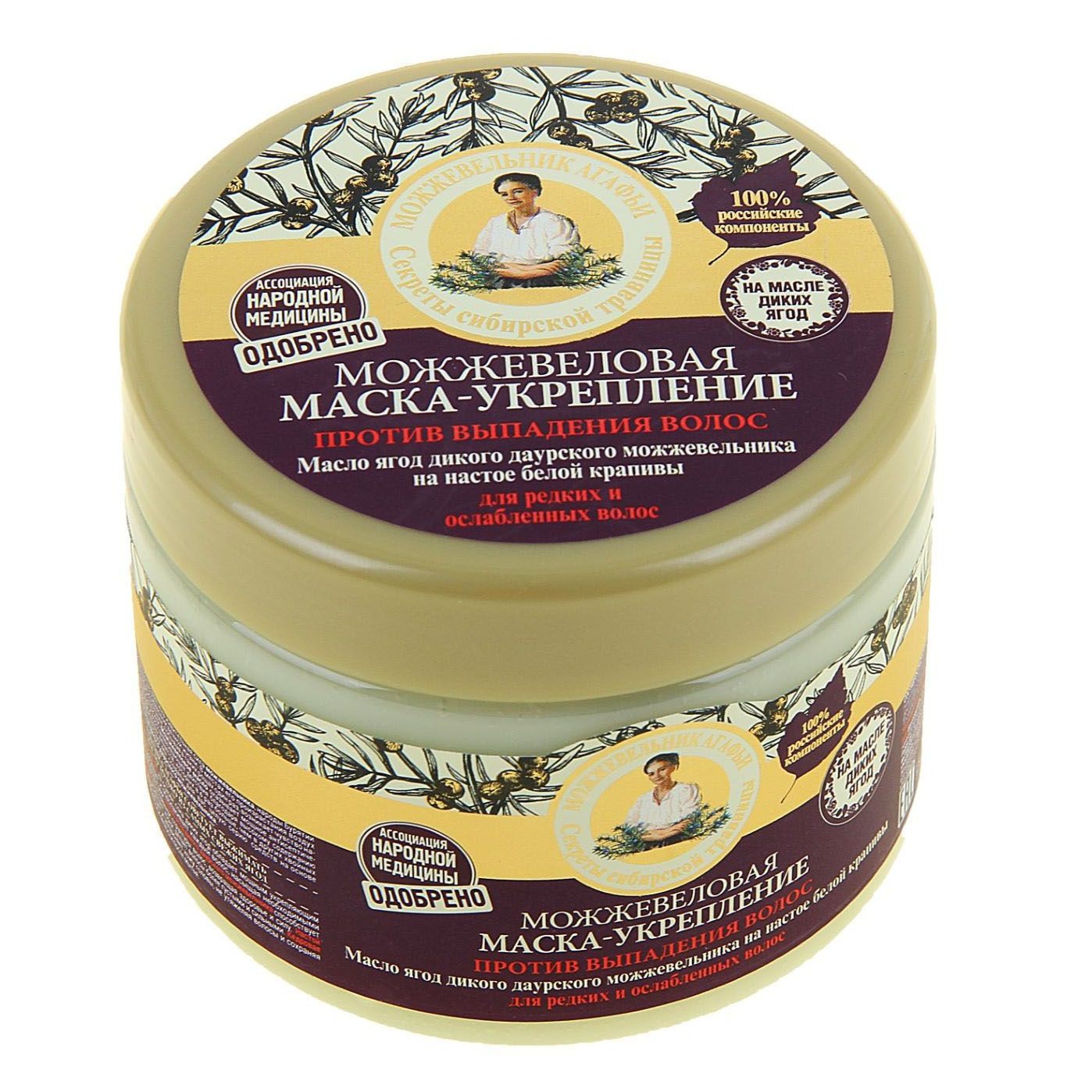 Маска для волос Рецепты бабушки Агафьи против выпадения волос можжевеловая 300 мл на основе сока диких ягод обладает мощным укрепляющим действием, согревает и обволакивает каждый волос, насыщая необходимыми питательными элементами.
