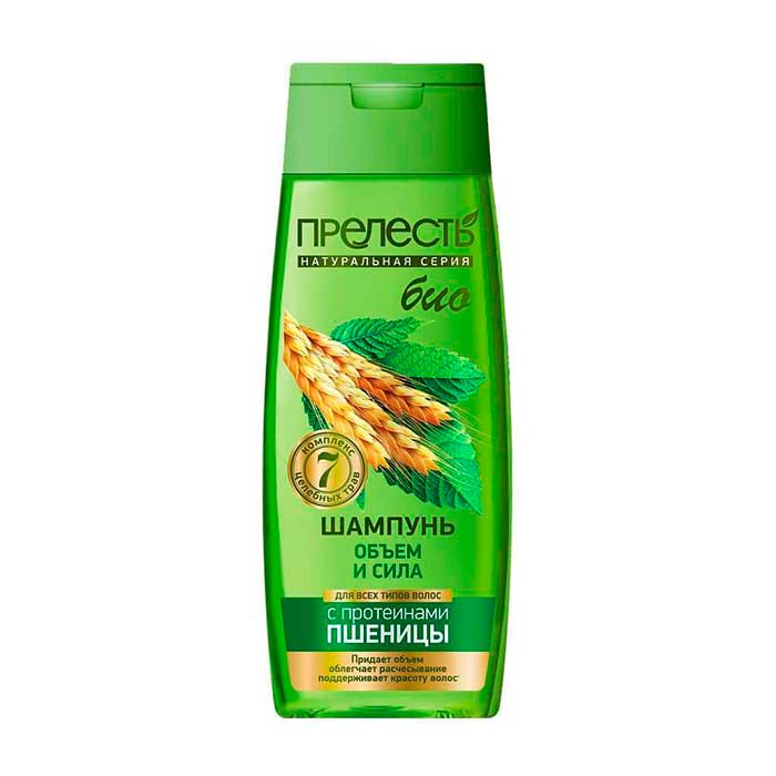 Шампунь для волос Прелесть Био Объем и сила 400 мл для всех типов волос. созданы на основе натуральных экстрактов растений и фитокомплекса "7 Целебных трав": ромашки, крапивы, хмеля, розмарина, хвоща, мелиссы и шалфея, - и способствуют питанию, укреплению волос, защите их структуры от повреждения, сухости и ломкости, придают волосам блеск и гладкость, обеспечивают бережный уход за кожей головы.