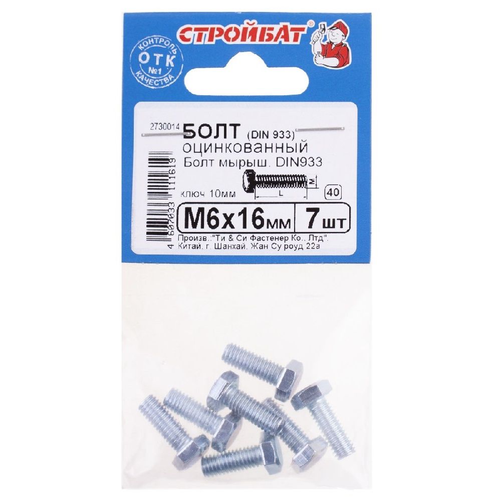 Болт DIN 933 М6×16 мм с оцинкованным покрытием — компактный и прочный крепёж для мелких соединений, идеально подходящий для установки фурнитуры и монтажа деталей. Оцинкованное покрытие защищает от ржавчины, продлевая срок службы. Минимум заметности — максимум прочности!