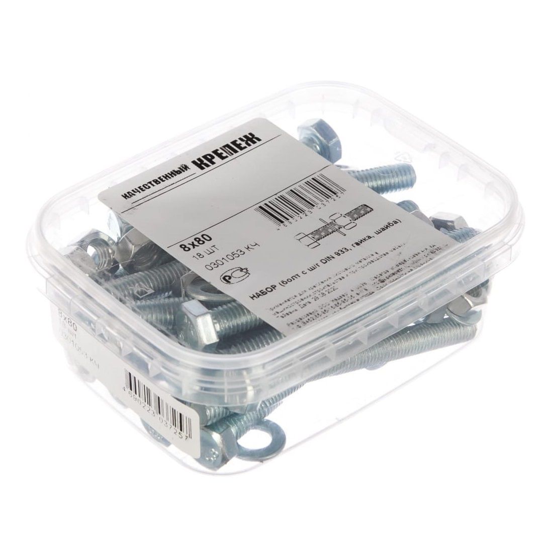 Болт DIN 933 М8х80 мм с шайбой и гайкой 18 шт