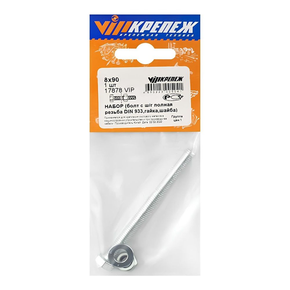 Болт DIN 933 М8х90 мм с шайбой и гайкой 1 шт