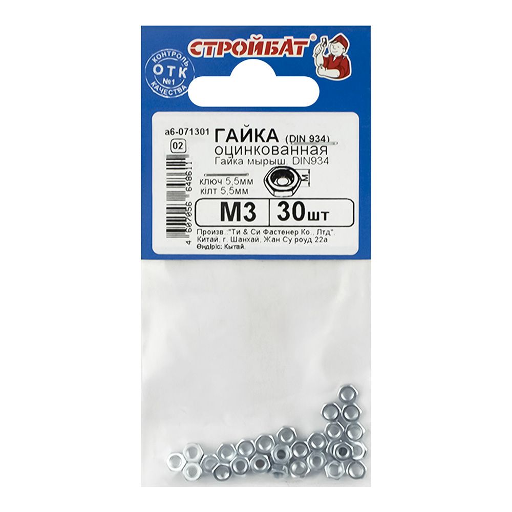 Гайка шестигранная DIN 934 М3 оцинкованная 30 шт