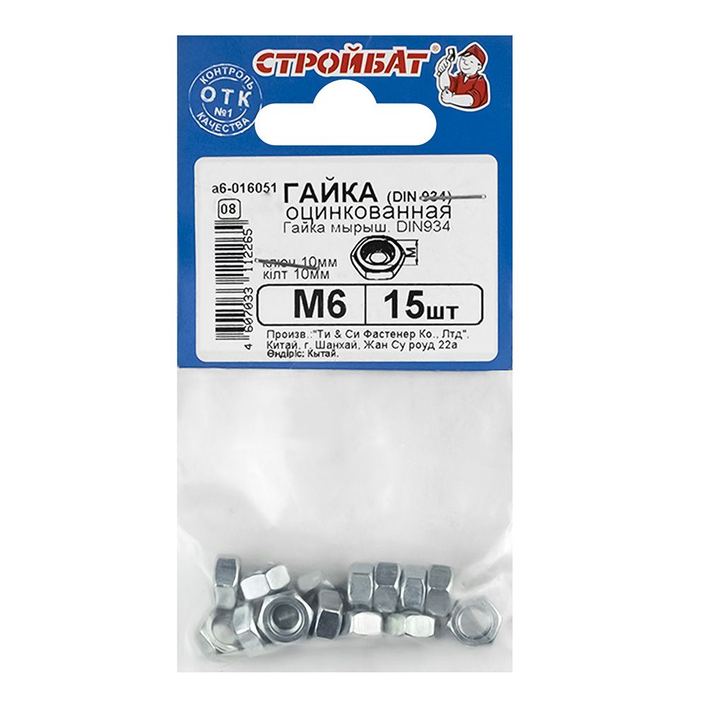 Гайка шестигранная DIN 934 М6 оцинкованная 15 шт