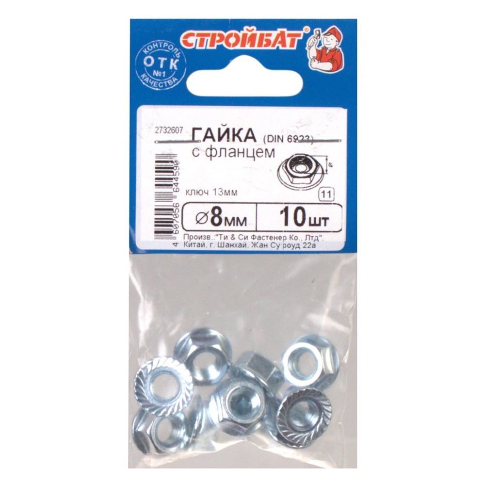 Гайка шестигранная с фланцем DIN 6923 М8 10 шт