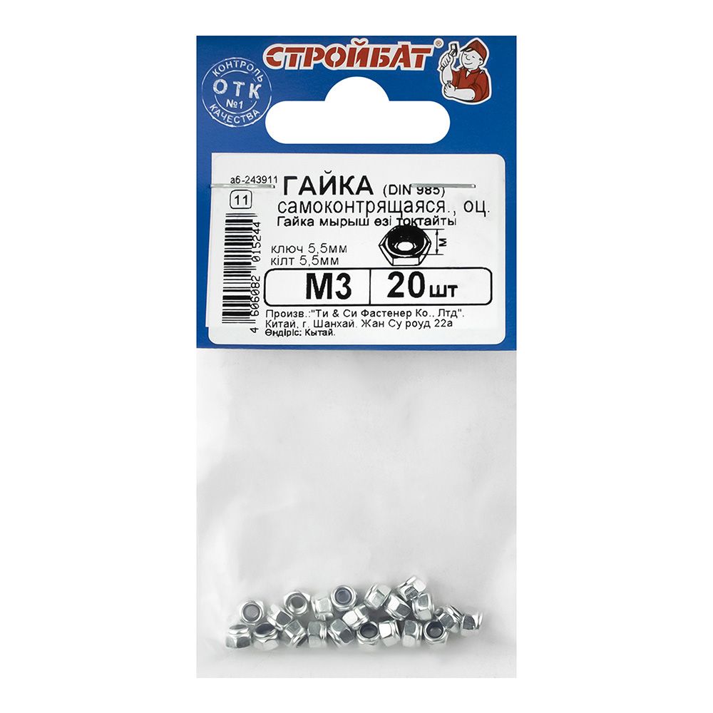 Гайка шестигранная самоконтрящаяся DIN 985 М3 20 шт