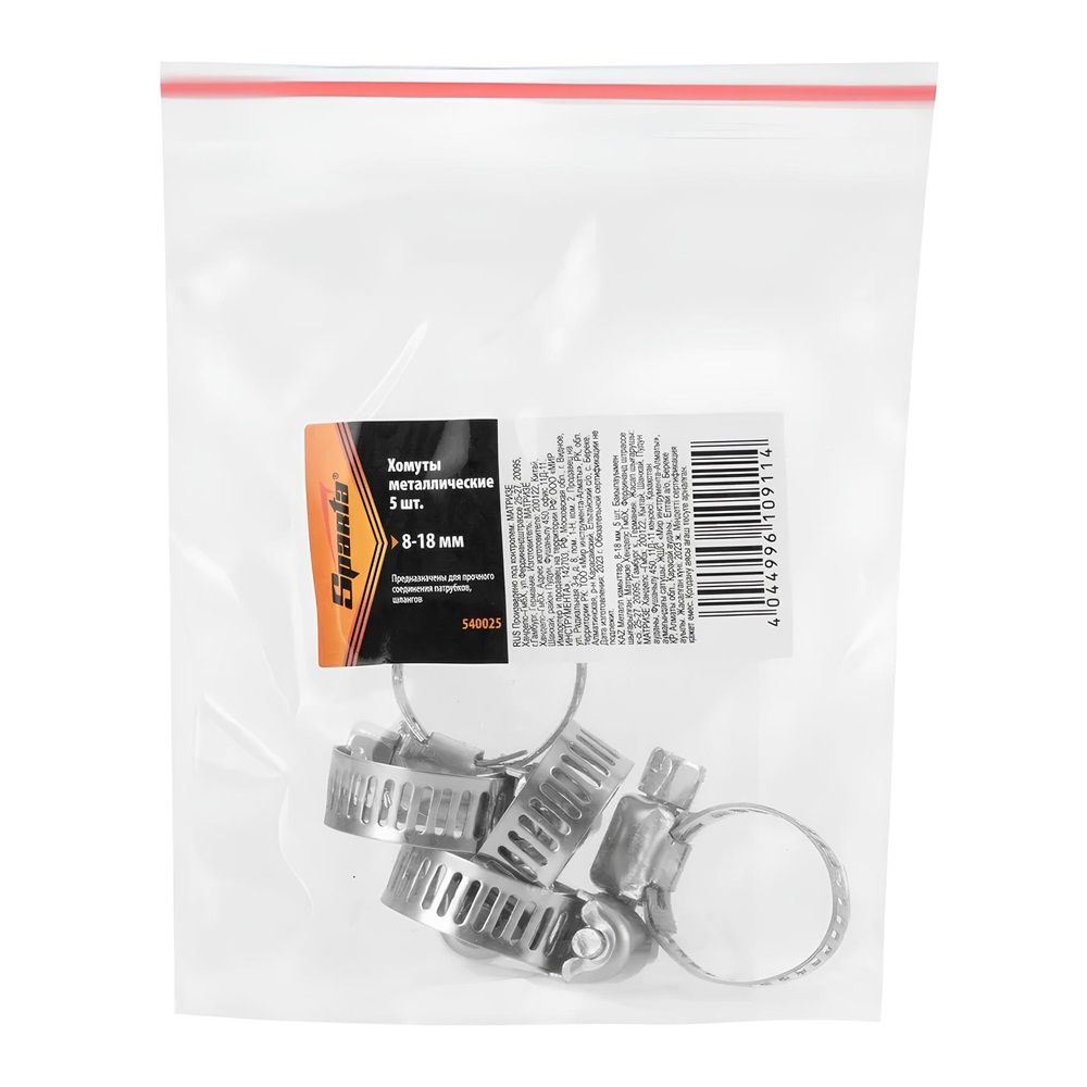 Червячные хомуты диаметром 8-18 мм (упаковка 5 шт.) предназначены для надежной фиксации трубок и шлангов небольшого диаметра. Легко регулируются и обеспечивают герметичность соединений, исключая возможность протечек. Прочный металлический корпус устойчив к коррозии и механическим повреждениям. Идеальны для применения в сантехнических системах, автосервисах и бытовых задачах, гарантируя удобство, надежность и долговечность крепления.